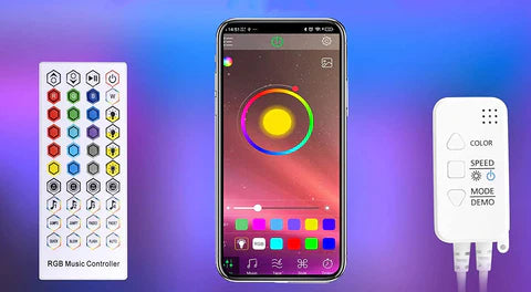 Las tiras de luz LED están diseñadas con 3 formas diferentes de control remoto para que elijas: control remoto IR de 24 teclas, control inteligente de la aplicación del teléfono celular y control de la caja.